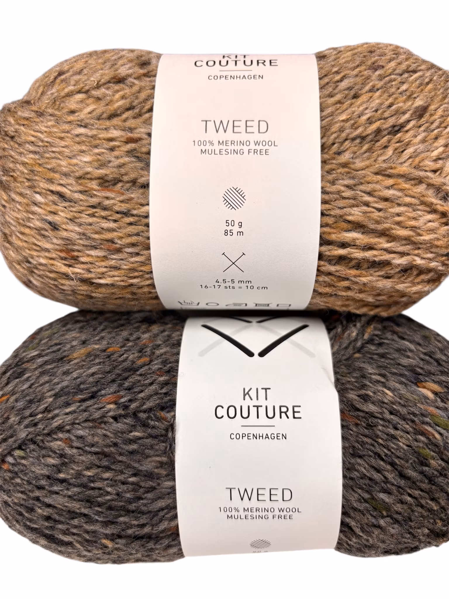 Garnet är 100% mohair och är ett tvåtrådigt garn, som har en basfärg och fyra färgade inslag. Garnet blir mjukare efter tvätt.Tweed passar väldigt bra till enfärgade projekt med en tråd. Tweed-garnet produceras exklusivt för Kit Couture av ett erfaret och meriterat spinneri på norra Irland, i fantastisk kvalitet – producerat under bra villkor för djur, människoroch miljö. Mulesingfritt.